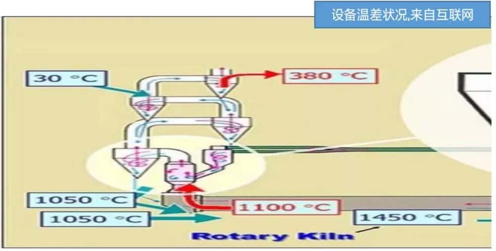 根据对多家水泥厂(如海螺水泥)的走访及勘验,无论是在预热器房钢结构的加工建造过程还是在设备的制作过程中都忽视了防腐环节,表现在结构的预处理及表面处理都比较差,焊渣、飞溅、焊瘤、切割瘤都未清除,影响外观的粗糙切割槽口未打磨清除或打磨平顺,完好漆膜底下的底材表面处理不彻底或者根本未进行处理。另外,设备内壁防火隔热材料敷设不均以及生产运行过程中局部隔热材料脱落导致明显不一致的热腐蚀。此外生产作业时生料在管、筒内流动不均也会引起同一部位在不同时间里产生温度差。现场勘验探测到旋风筒焊缝部位和焊缝周围的温差相当悬殊,尽管它们相距不到10厘米。
